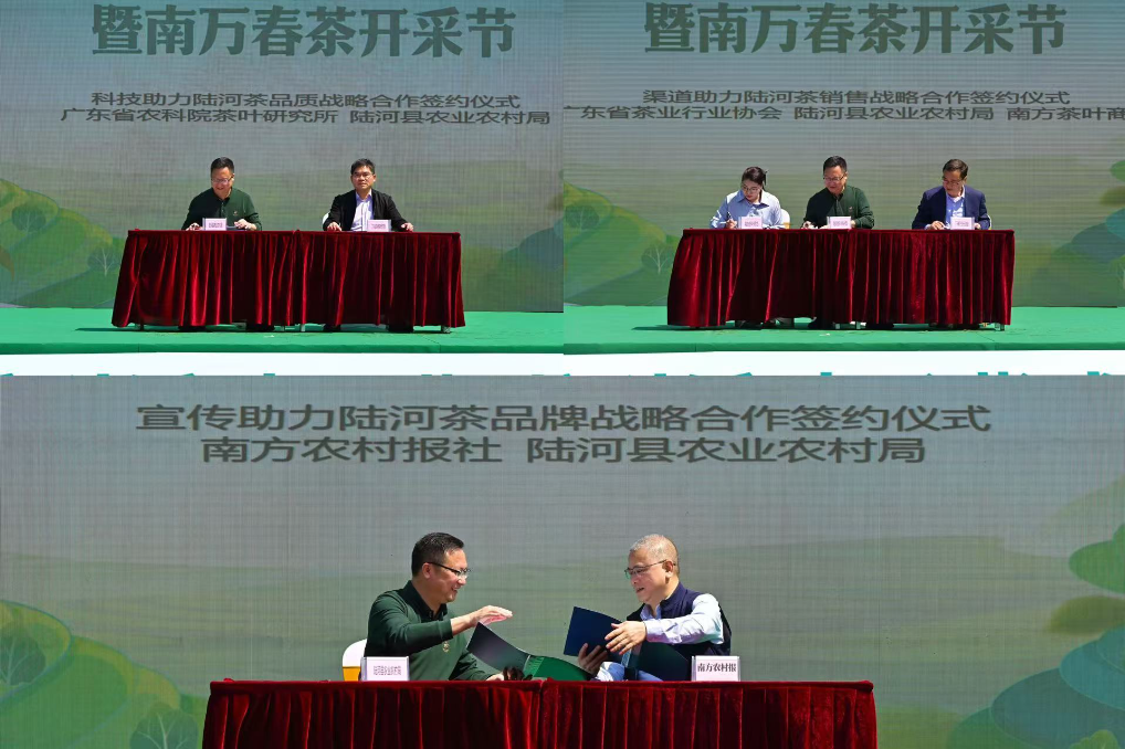 活动现场,省茶叶研究所、南方农村报社、省茶业行业协会、南方茶叶商会分别与陆河县农业农村局签署战略合作协议,各方将从科技赋能、品牌建设宣传、拓展市场渠道等多个维度展开深度合作,共同助力陆河茶叶走向全国市场。