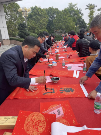 春节临近,为了营造浓厚的新年氛围,弘扬中华优秀传统文化,持续深化党史学习教育,推进“我为群众办实事”实践活动,近期,县委农办、农业农村局、乡村振兴局举办2022年“我们的节日·春节”——“红联颂党恩,翰墨润三农”送春联活动,邀请动海丰县书画院、海丰县硬笔书法协会李克千、林敏、何鑫斌、蔡春辉、叶华、翁成君、马小星等书法老师现场挥春。