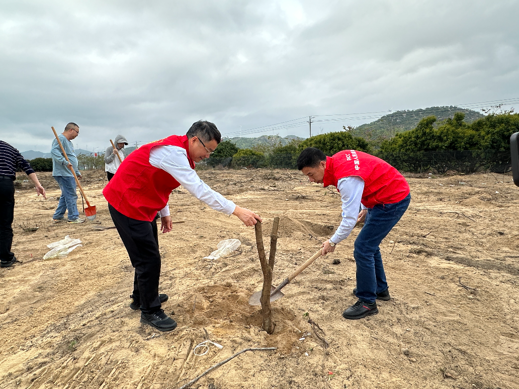 仪式后,市农业农村局、陆丰市金厢镇、人保财险汕尾市分公司党员干部及十二岗村、下巷村党员代表40余人分别赴十二岗村、下巷村植树现场,以小组为单位分工协作,有的挥锹铲土,有的扶苗填坑,有的浇水灌溉,各个环节井然有序。此次集中种植活动累计栽种了350株荔枝果树,一棵棵果树扎根于肥沃的土地,为当地村民开辟了新的收入渠道,同时也激发了村民参与乡村绿美的积极性,自觉参与果树的日常护养工作中,为打造美丽富饶的家园贡献群众力量。
