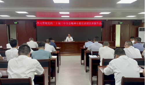8月14日,按照市委统一部署,学习贯彻党的二十届三中全会精神市委宣讲团宣讲报告会在市农业农村局召开,市农业农村局党组书记、局长、兼市委农办主任、市乡村振兴局局长叶杰雄作宣讲报告。