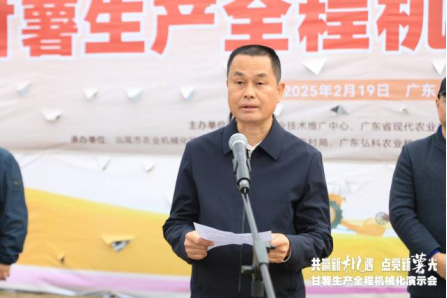 为加快推进甘薯生产全程机械化进程,提高甘薯生产效率,促进甘薯产业实现规模化、标准化发展。2月19日,省农业技术推广中心、省现代农业装备研究院、汕尾市农业农村局在陆丰市金厢镇联合举办“广东农技大讲堂--甘薯生产全程机械化演示会”,省农业农村厅农业机械化管理处副处长谭琼、省农业技术推广中心副主任罗国武、市农业农村局局长叶杰雄等参加演示会并致辞。