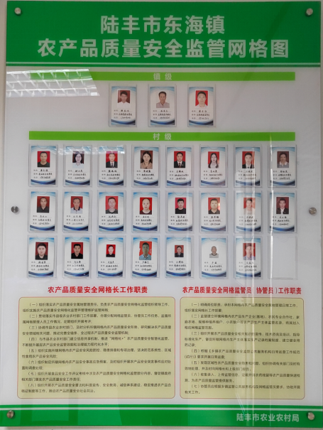 二、强化网格化管理。为强化农产品质量安全监管公共服务机构建设运行,2022年陆丰市全面推进农产品质量安全网格化监管工作,加强推进相关职能部门“定格、定人、定责”。目前,全市明确镇级网格长23人,监管员25人,协管员26人,明确村级协管员356人,信息员1050人,同时推动落实了23个镇级公示牌和346个村级农产品质量安全网格化公示牌的公示公开。