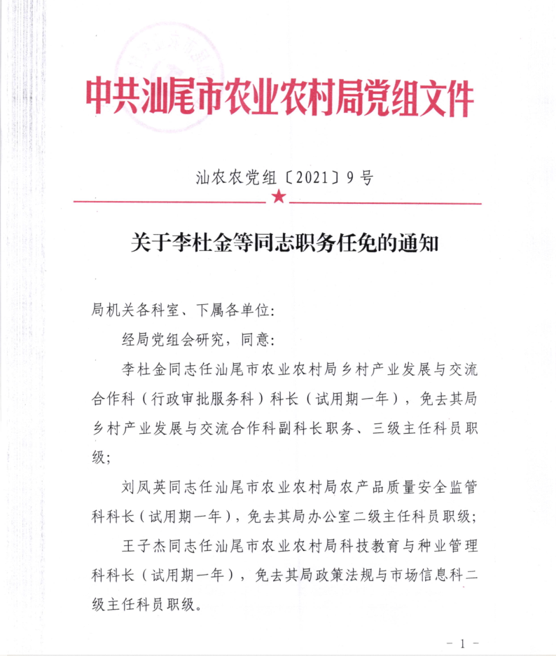 关于李杜金等同志职务任免的通知