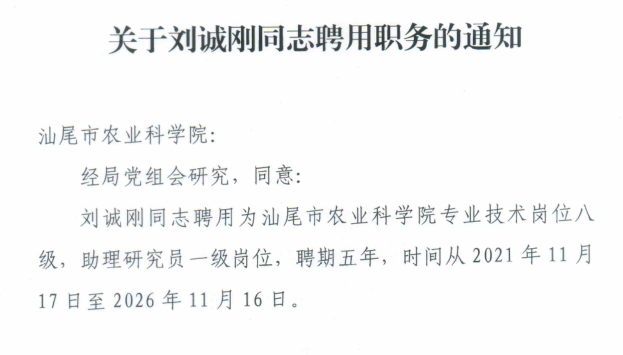 关于刘诚刚同志聘用职务的通知