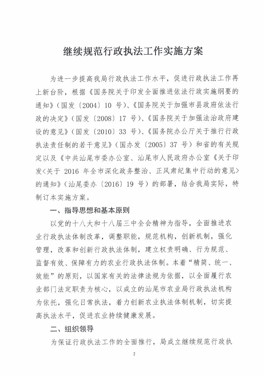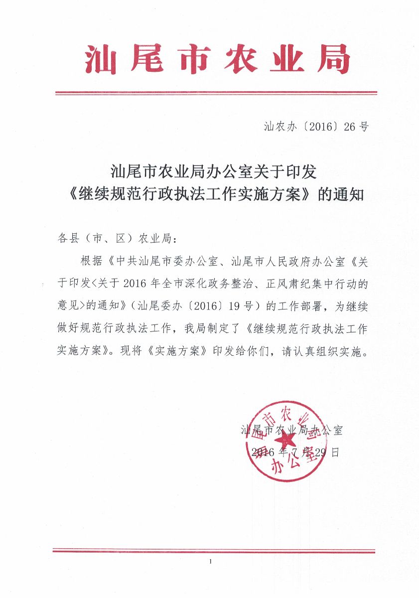 汕尾市农业局办公室关于印发《继续规范行政执法工作实施方案》的通知
