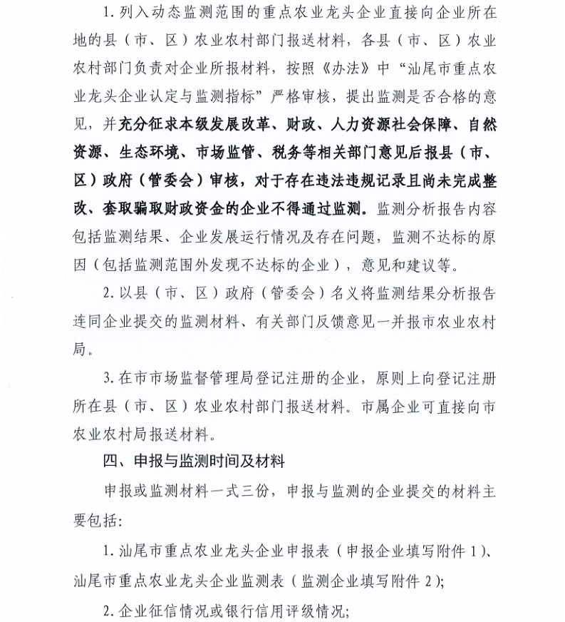 关于开展2024年汕尾市重点农业龙头企业申报与监测工作的通知