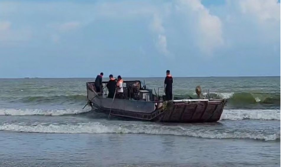 2024年6月15日,汕尾海洋综合执法支队在陆丰市金厢镇周厝村附近沙滩查获一艘无船名号标识的钢质船舶(编号扣20),总长13.2米,型宽3.75米,主机2部,主机功率53KW(左主机OM36PM,功率26.5KW;右主机OM36PM,功率26.5KW)。