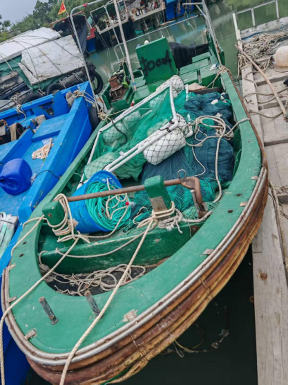 2025年5月15日,汕尾市海洋综合执法支队在汕尾港沙舌尾附近海域查获一艘涉嫌“三无”船舶(编号“扣007”),船上无船名号标识,船体材质玻璃钢,总长6.42米,型宽2.11米,主机1部汽油机,主机铭牌不详,主机型号、功率不详。