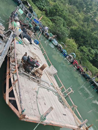 2.编号“扣002”船舶,船上放有“陆丰 良晖种养养殖船015”牌,船体材质玻璃钢,总长11.92米,型宽2.86米,主机1部,主机铭牌不详,主机型号、功率不详。