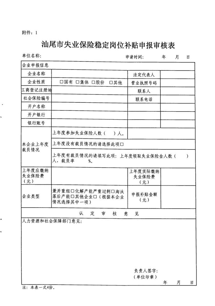 汕尾市失业保险稳定岗位补贴申报审核表.xls