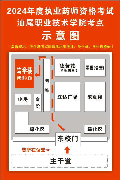 考点一:汕尾职业技术学院,地址路线:汕尾市城区文德路→汕尾职业技术学院(A区东门)→笃学楼。