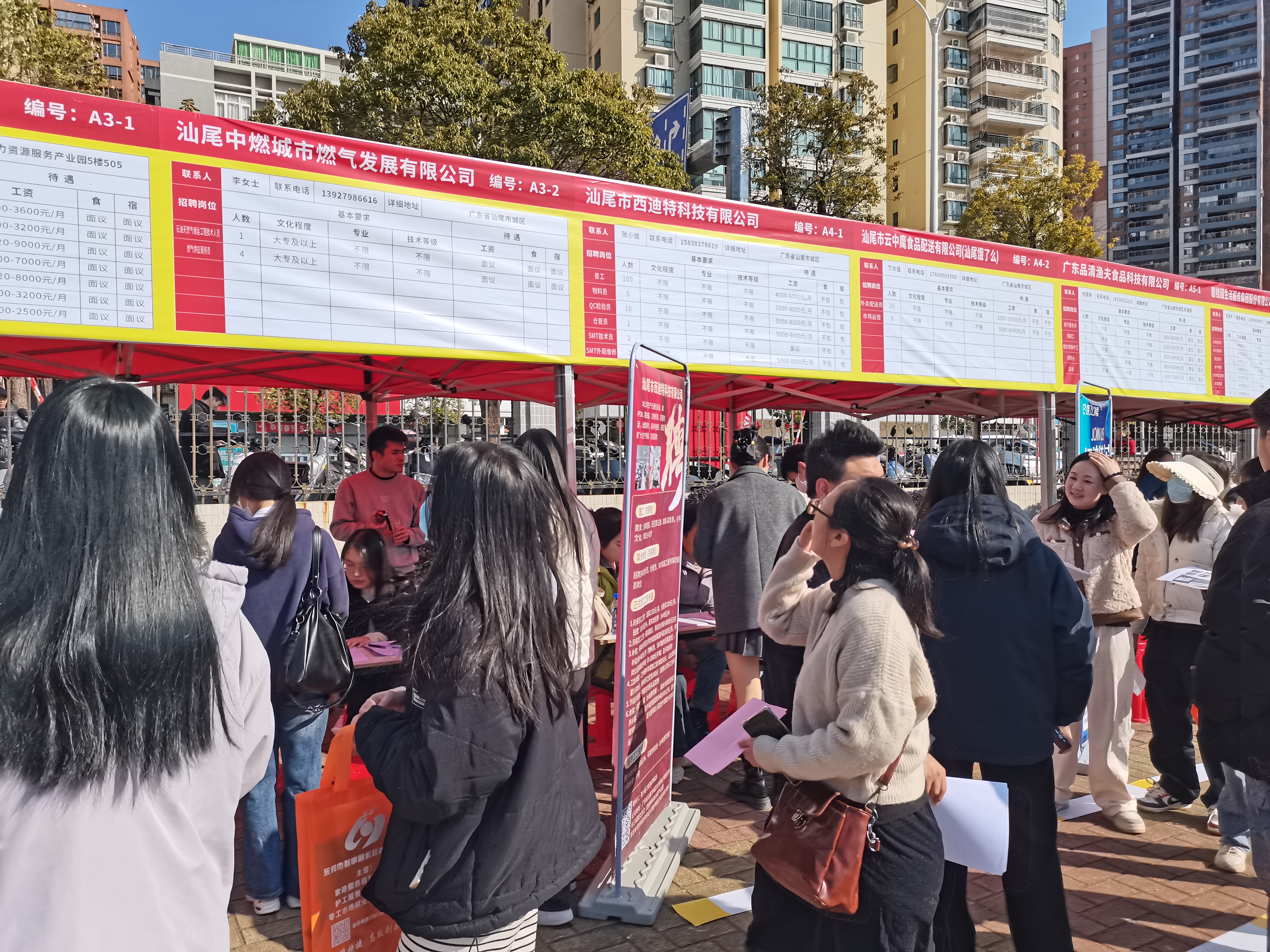 为进一步保障企业用工,帮助群众实现就近就业,2月10日至11日,由市、城区两级人力资源社会保障局联合市总工会、团市委、市妇联、市退役军人事务局、市残联和汕尾高新区管委会共同主办的2025年汕尾市“南粤春暖”企业用工招聘会在市区全民健身广场举行。