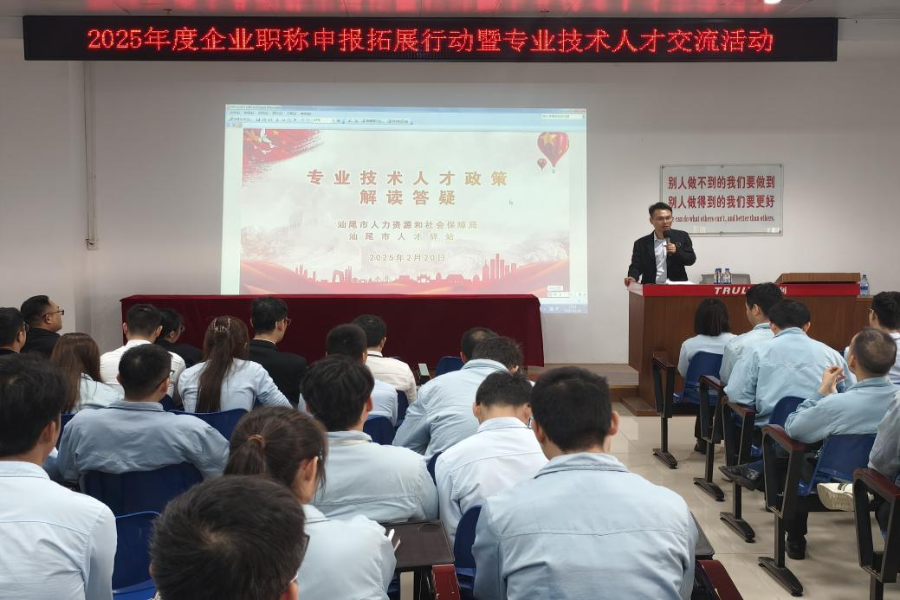 为深入贯彻落实汕尾市人才强市发展战略,进一步加强专业技术人才队伍建设,助力“百万英才汇南粤”系列行动,赋能人才发展新动能,日前,汕尾市人力资源和社会保障局、市人才驿站联合汕尾高新技术产业开发区管理委员会、电子科技大学广东电子信息工程研究院汕尾分院,深入信利光电股份有限公司开展“2025年度企业职称申报拓展行动暨专业技术人才交流活动”。此次活动旨在为企业提供精准化、专业化服务,助力专业技术人才成长。