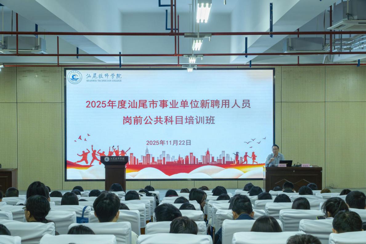 为深入贯彻落实党的二十届四中全会精神以及习近平总书记视察广东和出席第十五届全国运动会开幕式重要讲话重要指示精神,提升事业单位新聘人员履职能力,11月21日至23日,市人力资源社会保障局在汕尾技师学院举办了汕尾市2025年度事业单位新聘用人员岗前公共科目培训班,共有来自市直各有关单位的129名新聘用人员参加了培训。