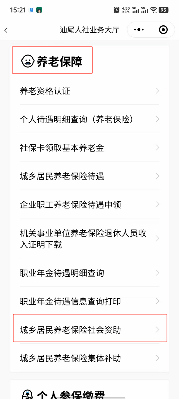 资助人可以通过手机登录“粤省事”小程序,选择“社保·就业”板块,进入汕尾社保业务大厅,下拉到“养老保障”板块找到“城乡居民养老保险社会资助”,按照实际情况选择本人办理或为他人办理,并根据系统指引填写申报信息,核对确认银行账号、资助年度和受资助人信息无误后,上传相关材料即完成业务申报。