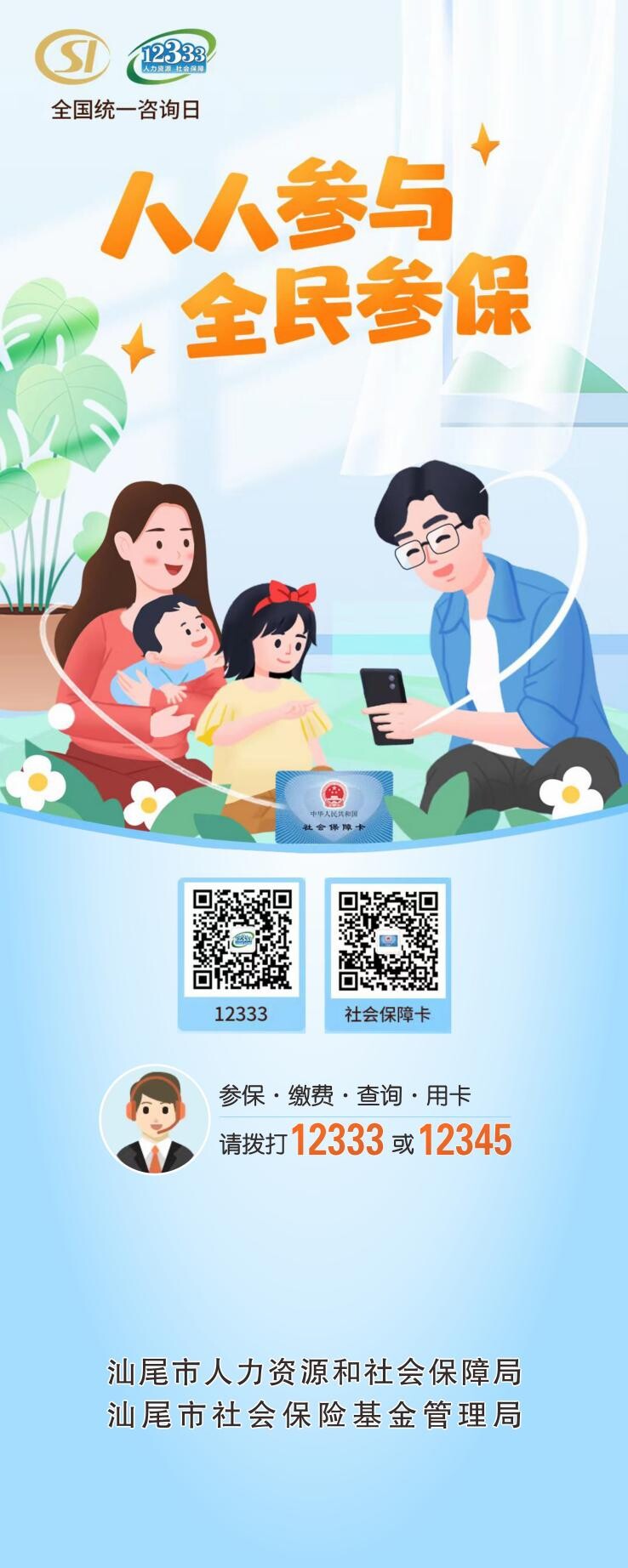 为推进高质量全民参保、宣传社会保障政策,发挥人力资源社会保障12333热线服务和品牌作用,汕尾市人力资源和社会保障局决定举办2024年12333全国统一咨询日活动。