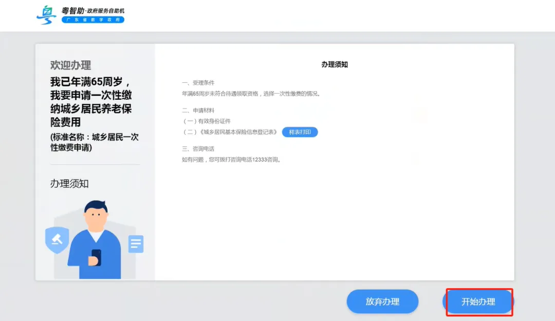 第二步:查看办理须知,点击【开始办理】