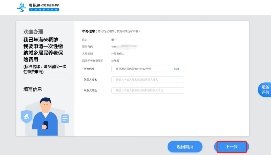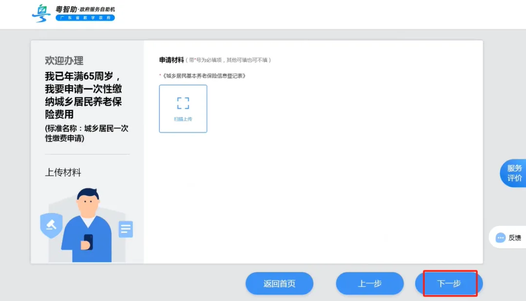 第四步:填写信息,上传材料,点击【下一步】