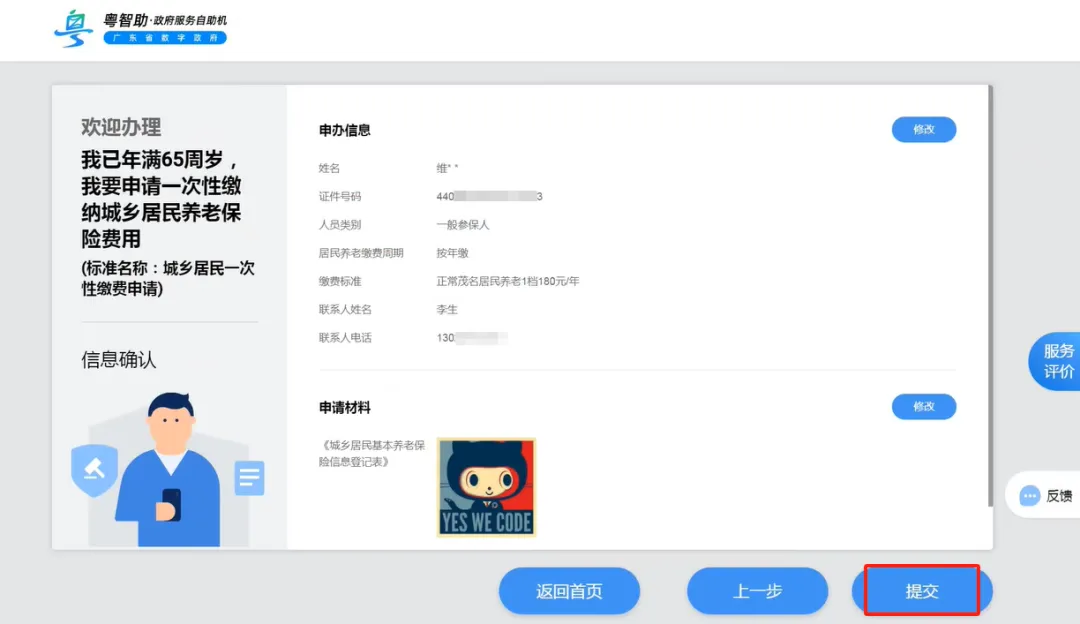 第六步:确认信息,点击【提交】即可