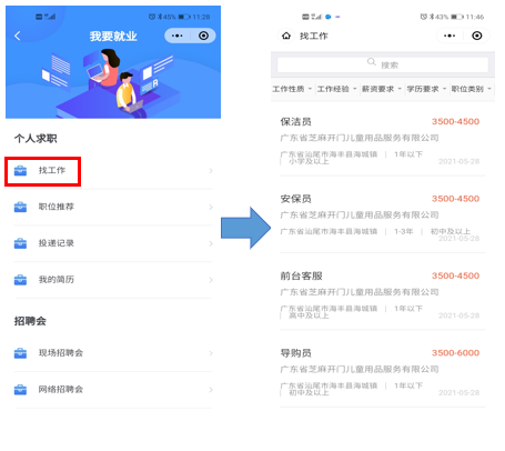 汕尾市人社局推出的“我要就业”服务不仅为求职者提供多一个找工作的“好通道”,也为企业招人提供了快捷好用的招聘“利器”。