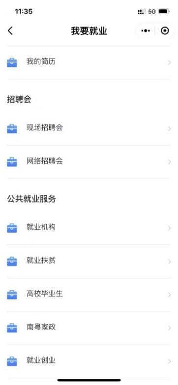 除了可以在“我要就业”上投简历、找工作,求职者还可以通过招聘会栏目了解更多招聘会信息,参加网络招聘会。同时,“我要就业”还提供了一系列的公共就业服务,包括就业机构、就业扶贫、高校毕业生补贴、南粤家政、就业创业补贴等政策指引和办事指南。