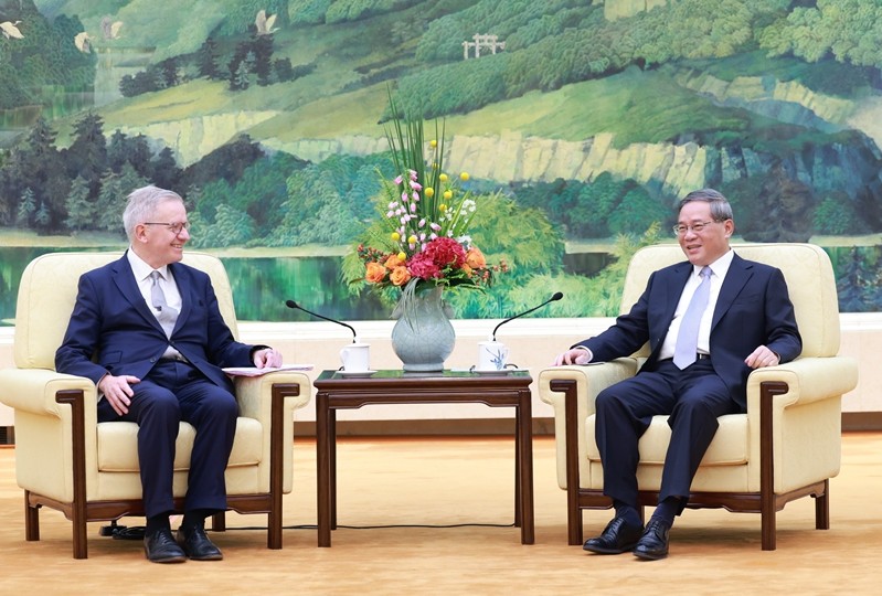 5月15日上午,国务院总理李强在北京人民大会堂会见英中贸易协会主席古沛勤率领的英中贸协访华团。新华社记者 王晔 摄