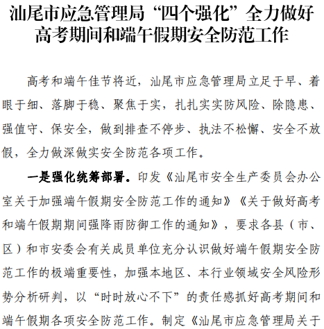 2024-06-08 08:55           来源: 本网          发布机构: 汕尾市应急管理局 【字体:   打印