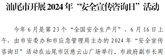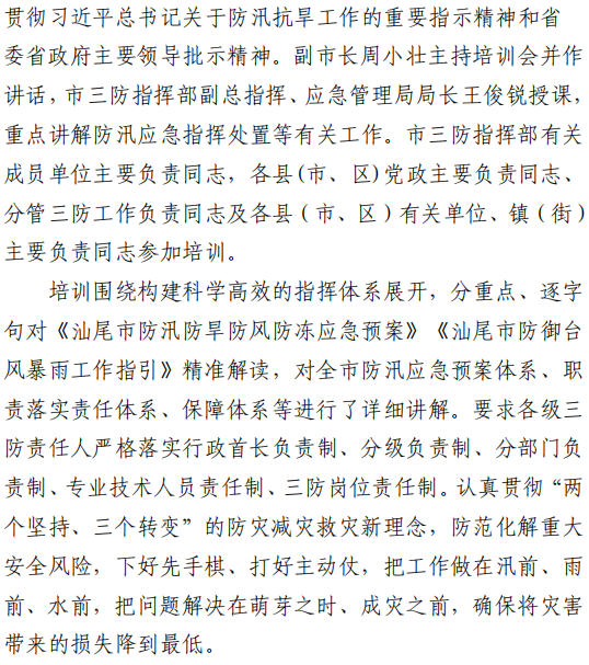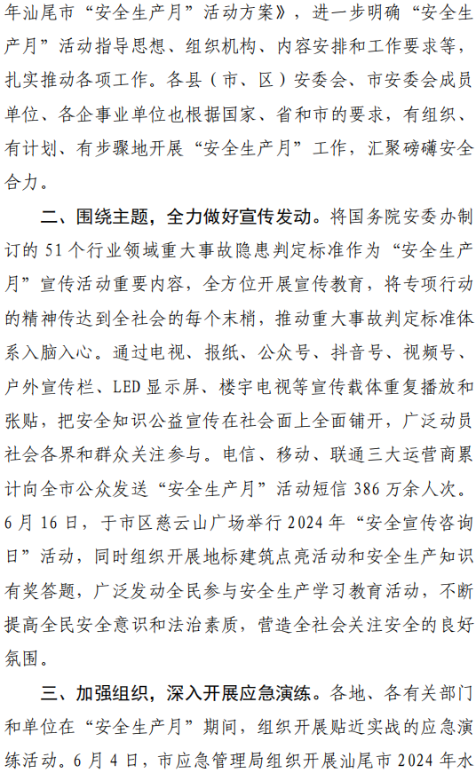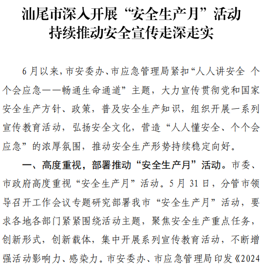 汕尾市应急管理工作简报(2024年第17期)