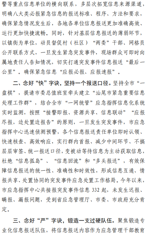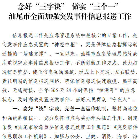 汕尾市应急管理工作简报(2024年第21期)