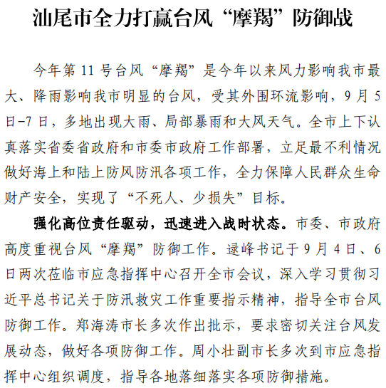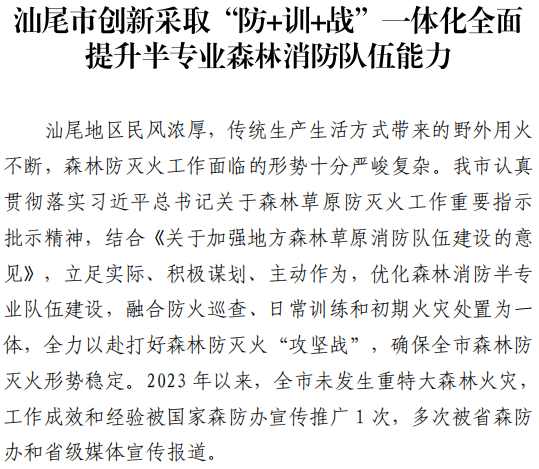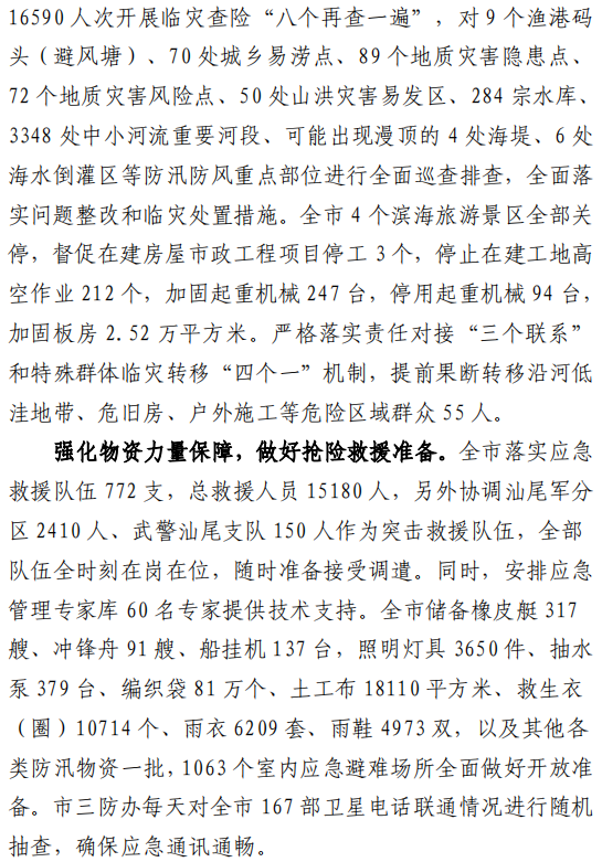 汕尾市应急管理工作简报(2024年第23期)