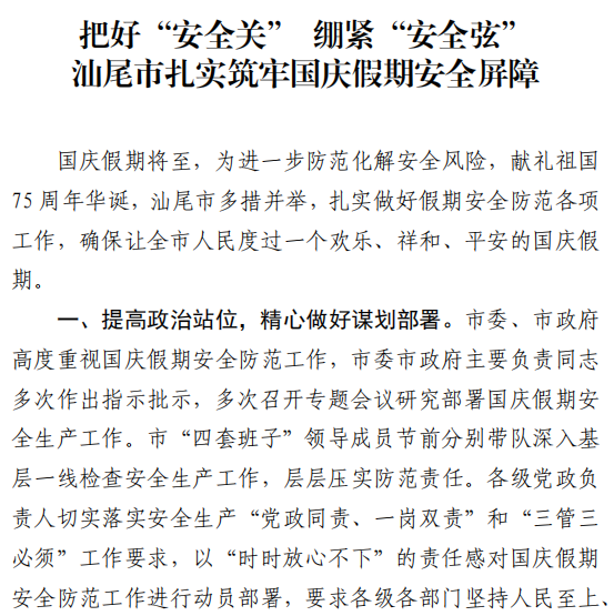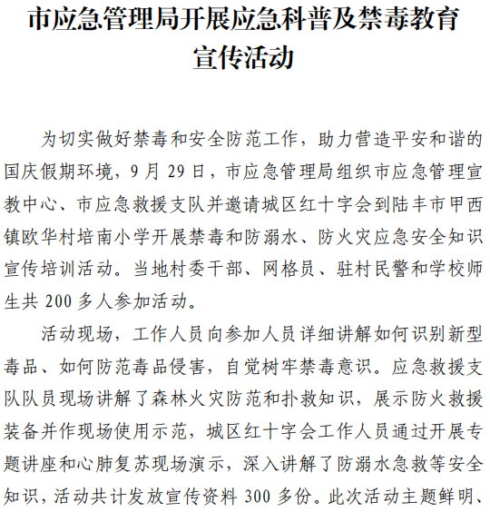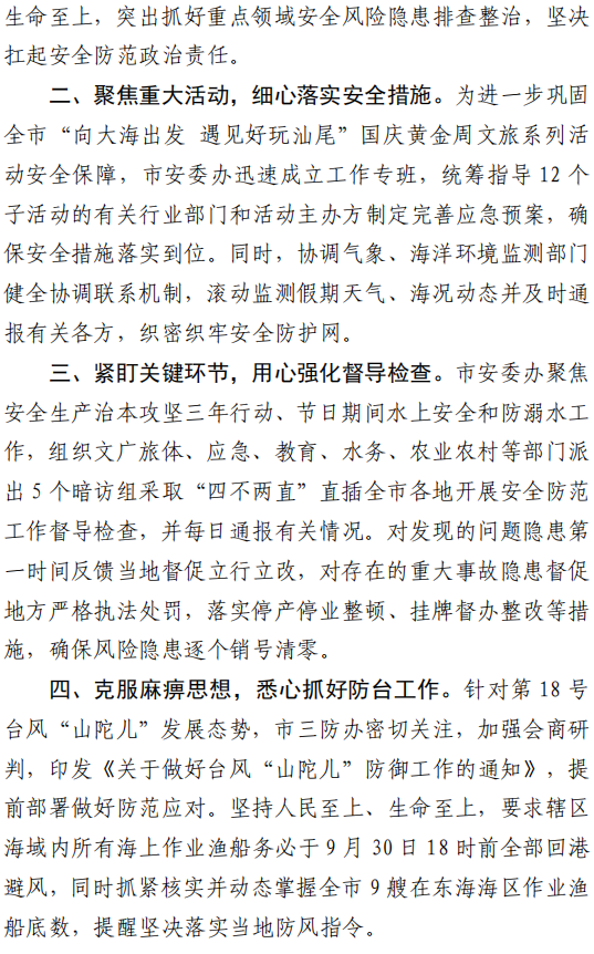 汕尾市应急管理工作简报(2024年第24期)