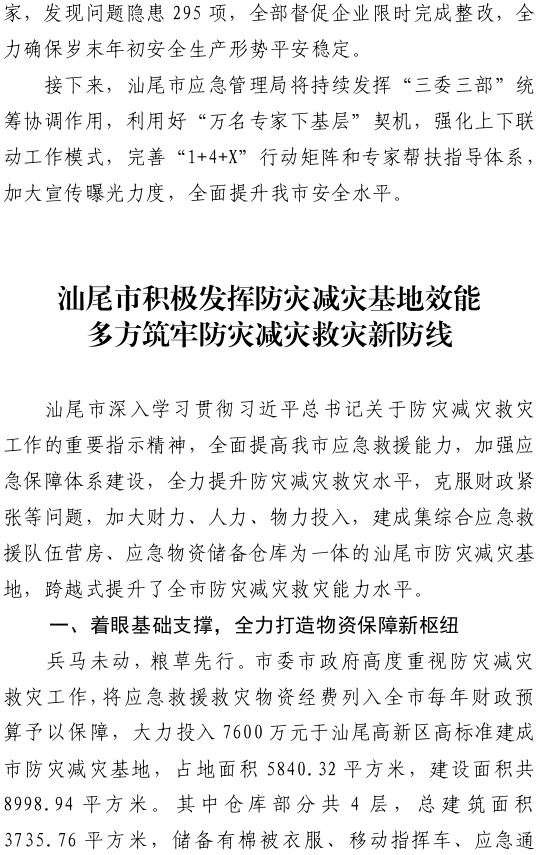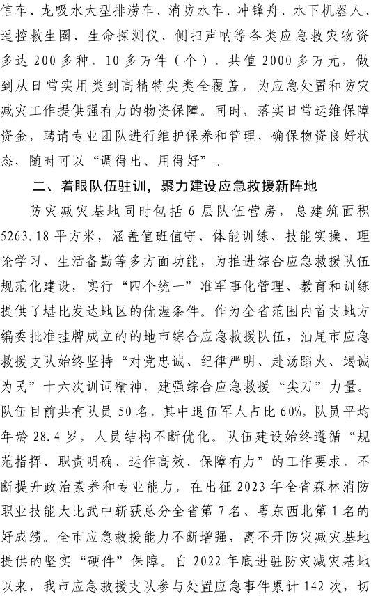 汕尾市应急管理工作简报(2024年第29期)