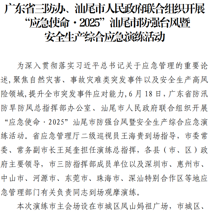 2025-06-23 16:08           来源: 本网          发布机构: 汕尾市应急管理局 【字体:   打印