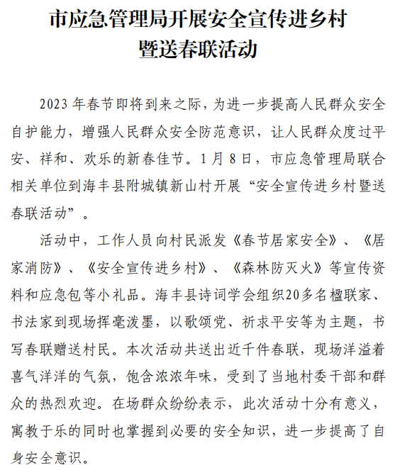 2023-01-10 16:33           来源: 本网          发布机构: 汕尾市应急管理局 【字体:   打印