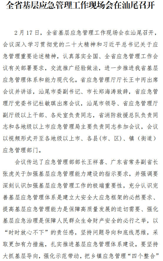 2023-02-27 15:41           来源: 本网          发布机构: 汕尾市应急管理局 【字体:   打印