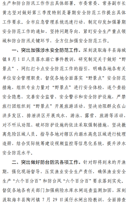 汕尾市应急管理工作简报(2023年第21期)