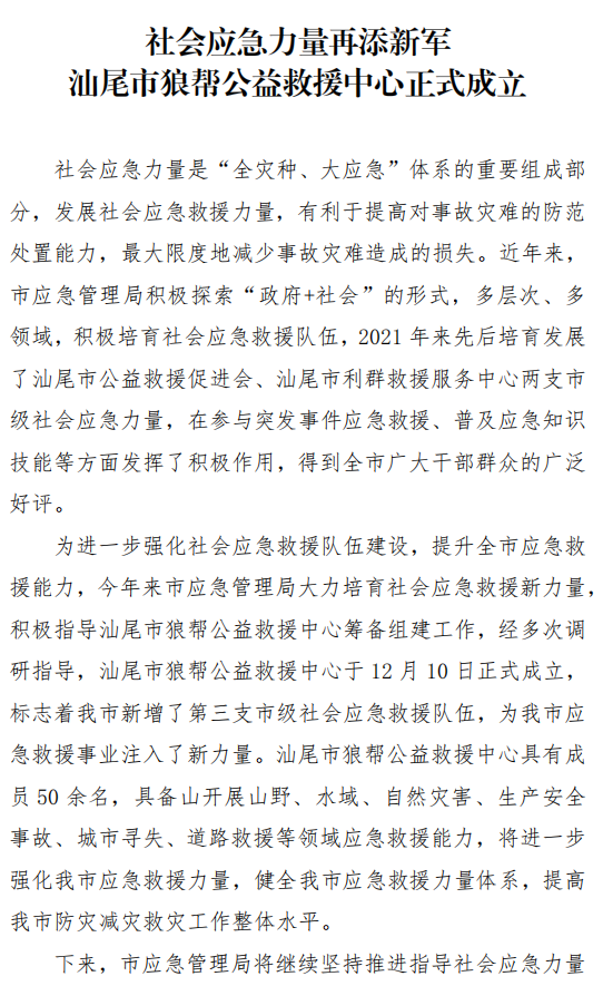 2023-12-22 11:26           来源: 本网          发布机构: 汕尾市应急管理局 【字体:   打印