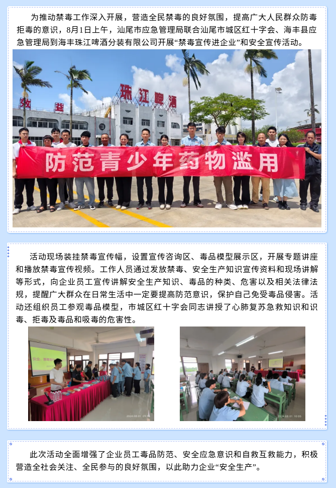 汕尾市应急管理局开展“禁毒宣传进企业”和安全宣传活动