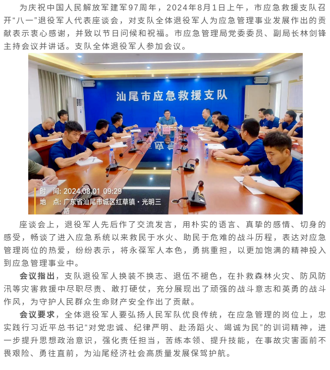 汕尾市应急救援支队召开“八一”退役军人代表座谈会