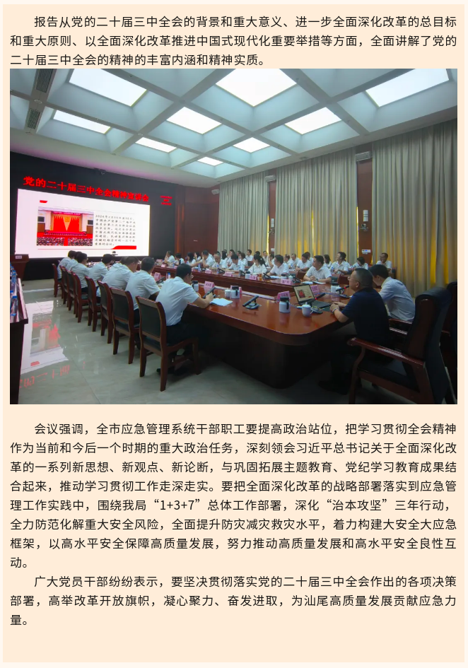 市应急管理局举行学习贯彻党的二十届三中全会精神宣讲报告会 推动实现实现高质量发展和高水平安全良性互动