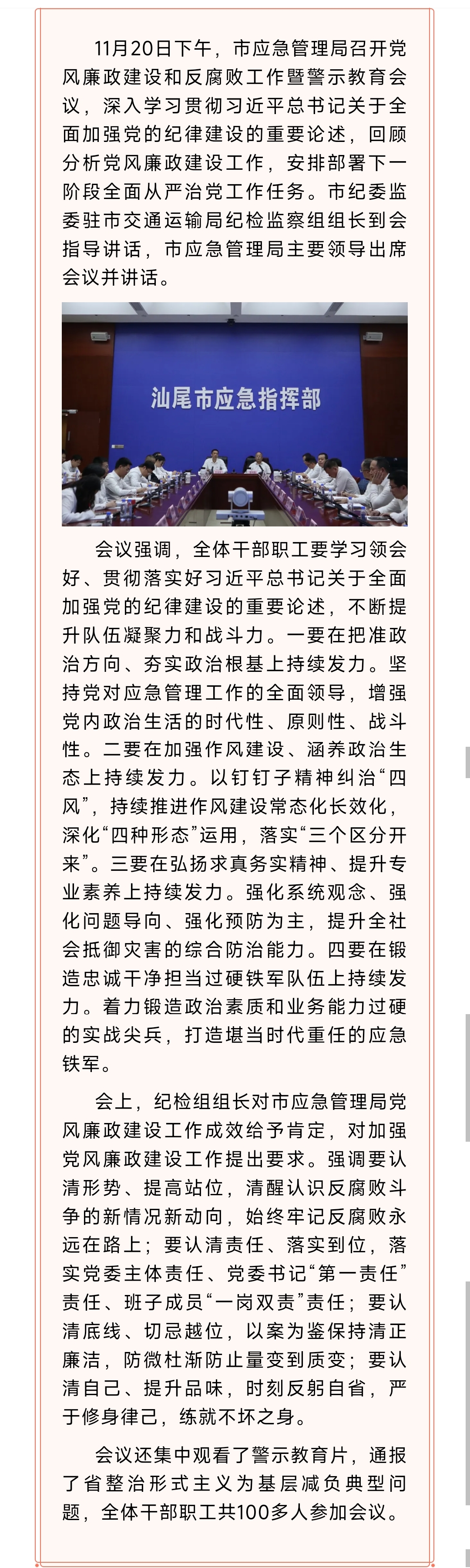 市应急管理局召开党风廉政建设和反腐败工作暨警示教育会议