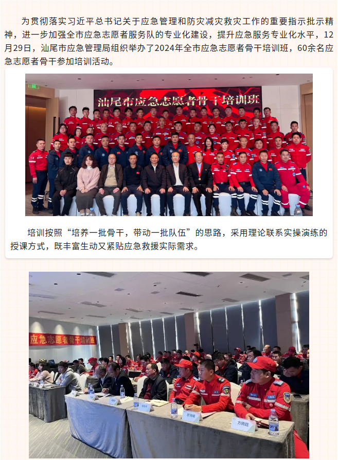 汕尾市应急管理局举办2024年全市应急志愿者骨干培训班
