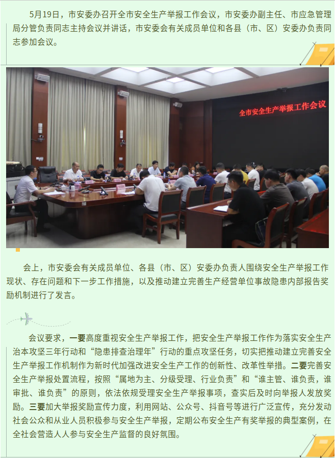 市安委办召开全市安全生产举报工作会议