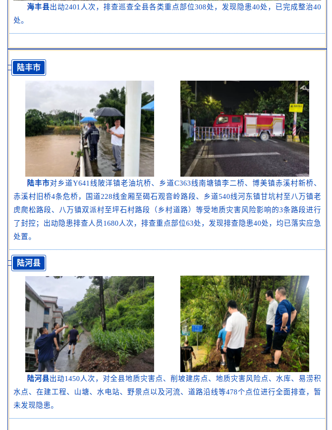 汕尾市各地积极开展防汛隐患排查 靠前防范化解灾害风险