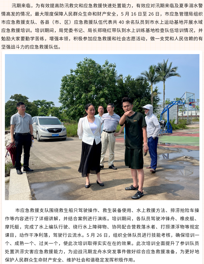 市应急管理局组织开展水域救援培训提升队伍水域救援能力
