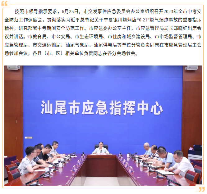 汕尾市部署做好2023年全市中考安全防范工作