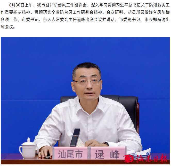 全市防台风工作研判会召开 全力打好打赢防台风硬仗 切实保障人民群众生命财产安全 逯峰郑海涛出席会议