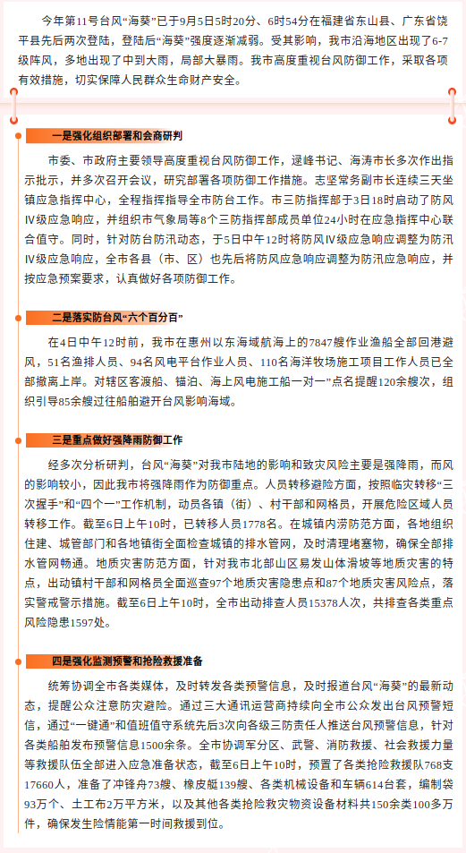 汕尾市全力做好台风“海葵”防御工作