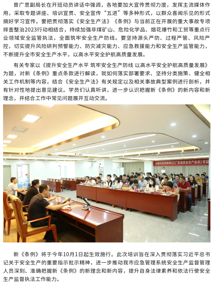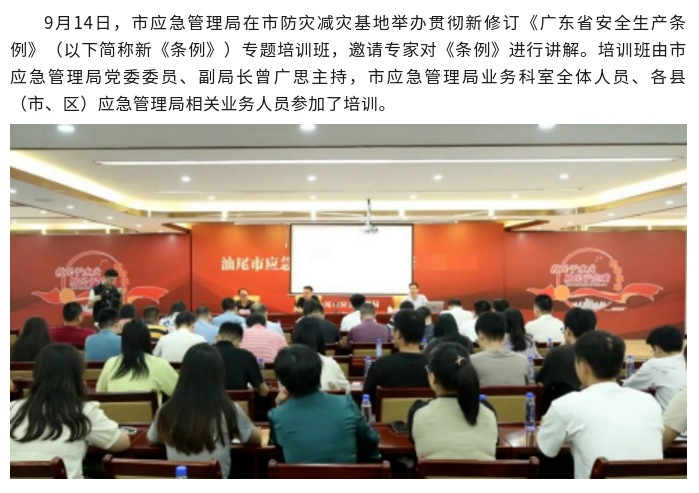 市应急管理局举办《广东省安全生产条例》专题培训班