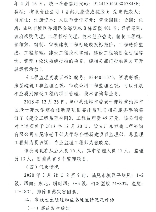 汕尾市城区“2.28”建筑施工事故调查报告